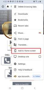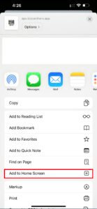 2. Tap “Add to Home Screen”